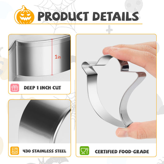 FUSOTO Halloween Cookie Cutters, 6 Pcs Holiday Cookie Cutters Halloween Shapes - Spider, Pumpkin, Bat, Cat, Ghost, Witch Hat for Cookie Baking