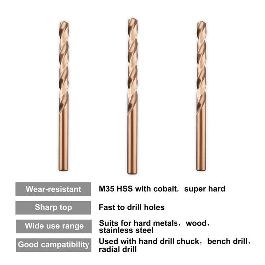 5/16" M35 Cobalt HSS Jobber Length Twist Drill Bit with Straight Shank,Heavy Duty, Pack of 10 PCS, Drilling for Cast Iron, Heat-Treated Steel, Stainless Steel and Other Hard Materials by LU&MN