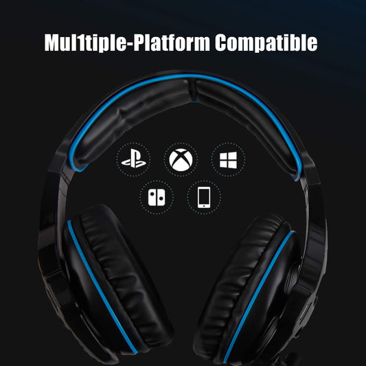 Gaming Headset for PS4, Xbox One, PC, PS5, Laptop, Mac, Nintendo Switch, 3.5MM Noise Cancelling Over Ear Headphones with Mic, Bass Surround, Soft Memory Earmuffs Blue