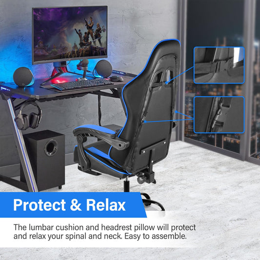 Gaming Chair, Backrest and Seat Height Adjustable Swivel Recliner Racing Office Computer Ergonomic Video Game Chair with Footrest and Lumbar Support, Black/Blue