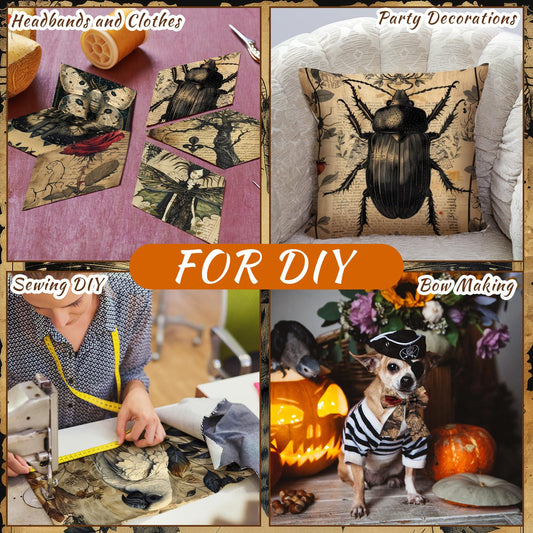 Ganeen 60 Pcs 10 x 10 Inch Vintage Halloween Quilting Fabric Squares Retro Halloween Fat Patchwork Precut Strips Rustic Crow Skull Fabric Bundles for Holiday DIY Craft Sewing Quilt Material Handmade