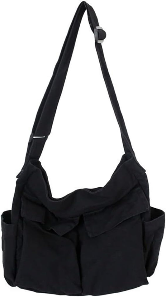 GAXOS Aesthetic Cute Messenger Bag for School Vintage Black Canvas Crossbody for Women Shoulder Laptop Bag