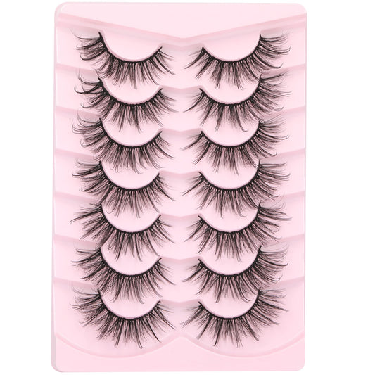 Geeneiya Lashes Wispy Mink Natural Eyelashes Spikes Lash Extensions Look Fluffy False Eyelashes 18mm Long Strip Lashes Cat Eye Eyelashes Fairy Look 7 Pairs Multipack
