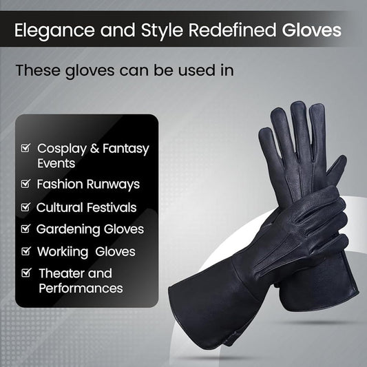 Generic Glamtron Medieval Renaissance Gloves Pure Lambskin Leather Cosplay Gauntlet Gloves Long Arm Cuff (X Large), Black