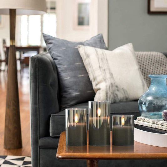 GenSwin Rechargeable LED Flameless Flickering Glass Candles with Remote Timer, Battery Operated Pillar Candles Long Lasting Grey Real Wax USB (D 3”×H 4”5”6”)