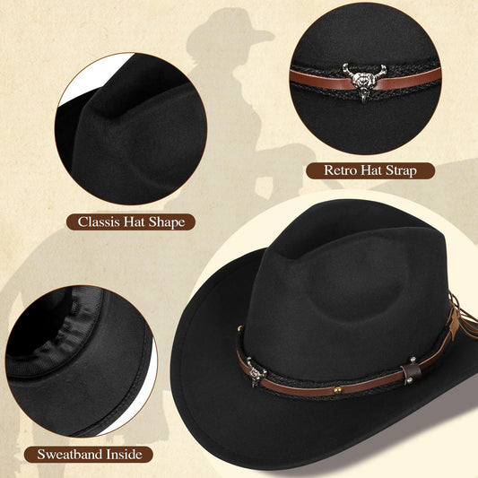 GERVAISE Womens Western Cowgirl Costume 70s Hippie Tassels Fringe Vest outfit Hat 5pcs (Black, Large)