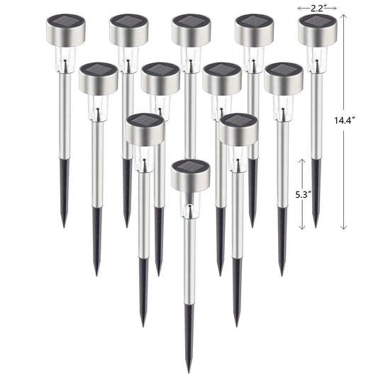 GIGALUMI Solar Pathway Lights 12 Pack, Stainless Steel IP44 Waterproof Auto On/Off Outdoor LED Pathway Landscape Solar Lights for Garden, Yard, Patio, Path and Walkway. (Cold White)