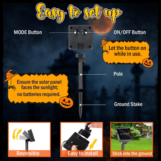 GOAUS Halloween LED Garden Flag Light Up Solar Powered, Ghost Decorations Outdoor, Double Sided Oxford Decorative Flag for Lawn Yard Outside Decor, 12x18 Inches