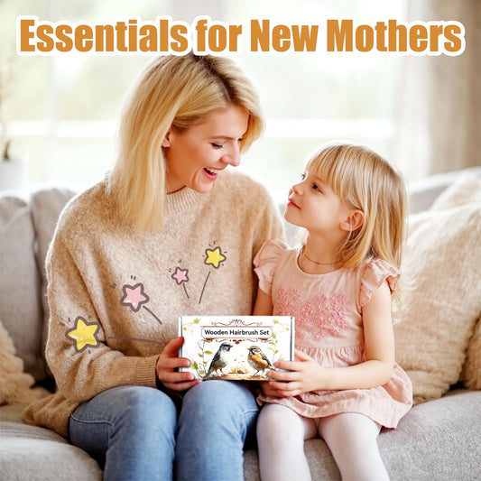 Goat Baby Hair Brush Set, 2pcs Wooden Soft Bristles Brush with Comb and Green Silicone Bath Brush for Newborns Toddlers Safe Natural Hair Care Kit