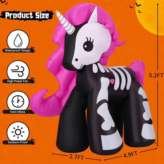 GOOSH 5.2 FT Halloween Inflatables Unicorn Outdoor Decorations Blow Up Yard Skeleton Unicorn with Built-in LEDs for Garden Lawn Indoor Party Decor