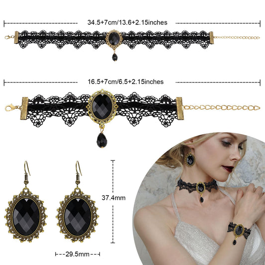 Gothic Choker Necklace Halloween Jewelry Set for Women, Red/Black Choker Goth Lace Witch Costume Jewelry, Witchy Vampire Masquerade Steampunk Victorian Lolita Renaissance Costume Accessories for Woman