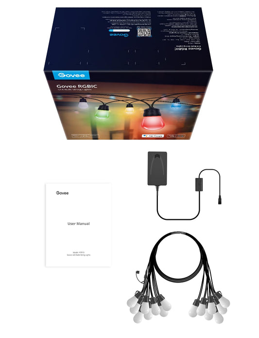 Govee Smart Outdoor String Lights H7015, 48ft RGBIC Outdoor Lights with 15 Dimmable LED Bulbs, IP65 Waterproof, Color Changing Warm White Lights with 47 Scene Modes for Patio, Backyard, App Control