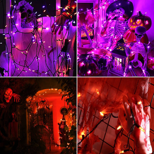 Green Convenience Halloween Lights 33ft 100 LED Battery String Lights with Motion Sensor Spooky Music or Battery Powered Orange & Purple 2 Colors in 1 Waterproof Halloween Indoor Outdoor Decor