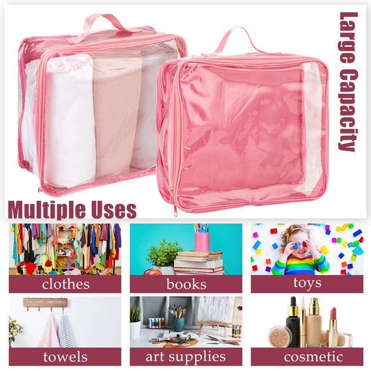 6 Pieces Large Clear Travel Packing Cube Clear Vinyl Zippered Storage Bags See Through Moving Bag PVC Multipurpose Pouch with Handle for Suitcase Shirts Dress Storage (Pink,11.8 x 10.2 x 3.9 Inch)