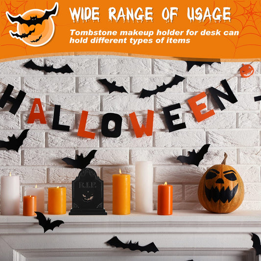 Gueevin Tombstone Gothic Pen Holder Coffin Makeup Brush Holder Utensil Goth Toothbrush Spooky Bathroom Decor Office Pencil Organizer for Desk Christmas Decor Goth Gifts Vanity Accessories