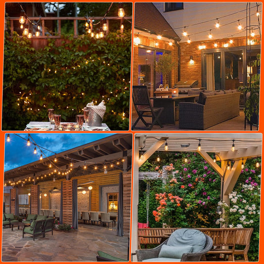 GvvooHome 50FT LED Outdoor String Lights with 17 Shatterproof Waterproof S14 Replaceable Bulbs(2 Spare), 2700K Commercial Grade Patio Lights, Outside Hanging Light for Yard Garden Porch Deck Decor