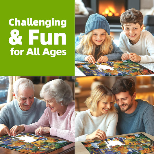 Halloween 1000 Piece Puzzle for Adults Jigsaw Puzzle Spooky Trick-or-Treat Scene with Pumpkins Ghosts & Haunted Houses Autumn Challenging Fun Family Game Night Puzzle with Poster(27"x20")