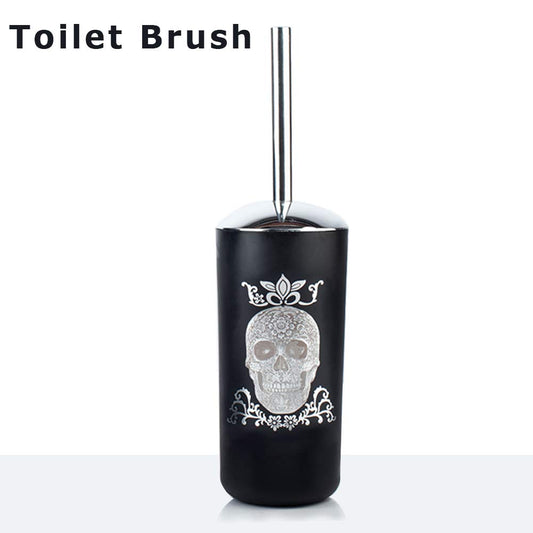 Halloween Bathroom Accessories Set 6 Piece Plastic Bathroom Ensemble Soap Dispenser Toothbrush Holder Tumbler Soap Dish Trash Can Toilet Brush Holder for Decorative Countertop Housewarming Gift(Black)