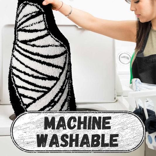 Halloween Bathroom Rug Black and White Horror Decorations Non Slip Coffin Bath Mats for Bathroom Bedroom Cute Runner Gothic Home Decor Scary Funny Mummy Carpet 18x47 inch
