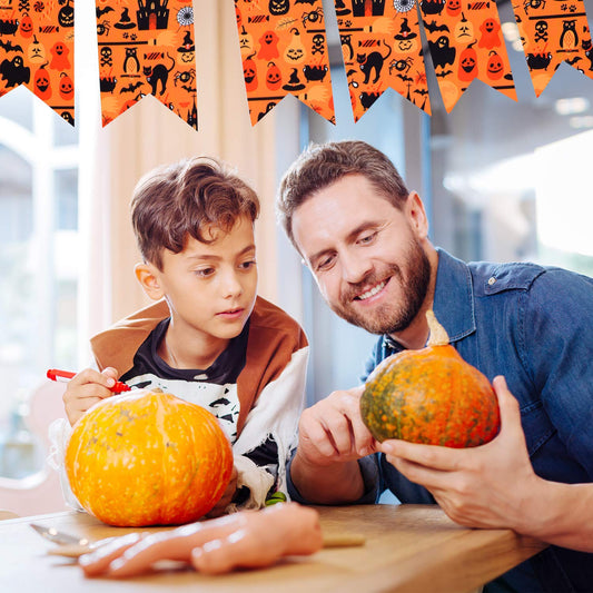 Halloween Fabric 1 Yard Ghost Pumpkin Cats Pattern Halloween Orange Printed Fabric for Sewing Quilting Apparel Crafts Home Decor Supplies (1 Piece)