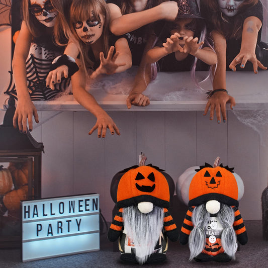 Halloween Gnome Decorations,2 Pack Handmade Pumpkin Face Hats Swedish Tomte Nordic Plush Elf Doll Nisse Adorable Fall Gnomes for Halloween Home and Office Decor