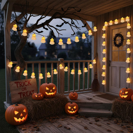 Halloween Ghost Lights,8.5Ft Halloween Fairy Decorations Lights with 10 LED White Ghost Lamp Waterproof UL Listed for Indoor Bedroom Patio Backyard Camping Desk Party Decor