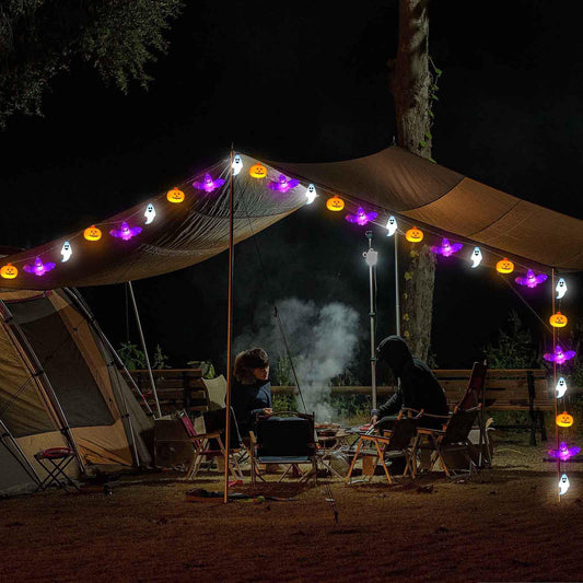Halloween Lights, 16.4FT 30 LED Pumpkin Bat Ghost Battery Operated Orange and Purple String Lights Strobe 8 Lighting Modes Timer Fairy Indoor Outdoor Window Front Porch Decor Party Decorations
