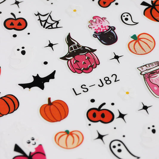 Halloween Nail Stickers, Halloween Nail Art Decals 3D Self-Adhesive Pink Ghost Skull Spider Pumpkin Nail Design DIY Holiday Nail Decoration for Party (6 Sheets)