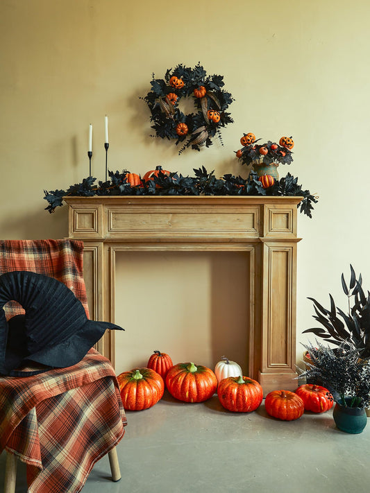 Halloween Wreath for Front Door - 20inch Eucalyptus Wreaths with Pumpkin, Feather and Maple Leaves for Indoor Outdoor Wall Window Porch Patio Garden Farmhouse Home Party Prom Decoration