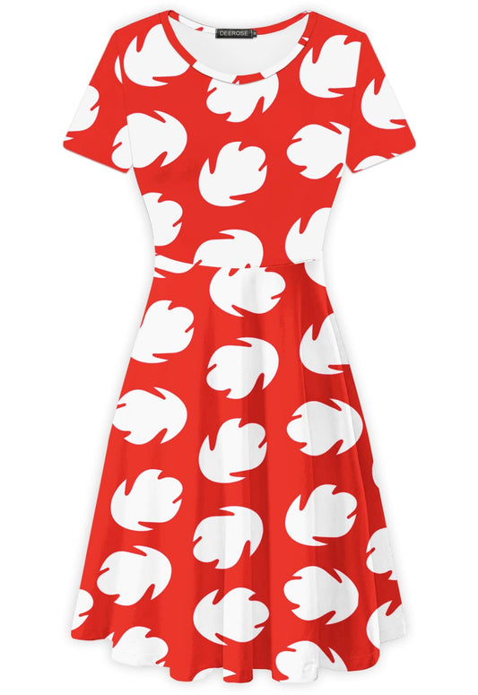 Halloween Women Red Leaves Print Dresses Hawaiian Knee Length Tunic Dress 3XL