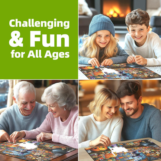 Halloween Witch Cat 1000 Piece Puzzle for Adults Halloween Candy Store Jigsaw Puzzle Spooky Treats Scene Challenging Impossible Puzzle Fun Games for Adults & Family Game Night