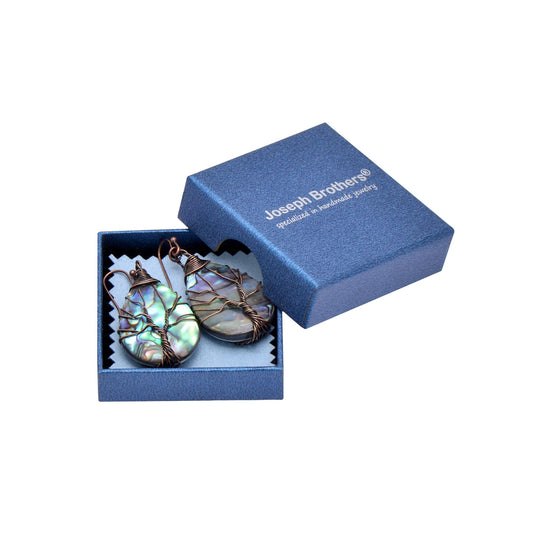 Handmade Teardrop Abalone Shell Dangle Earrings for Women, Wire Craft Tree of Life Earrings