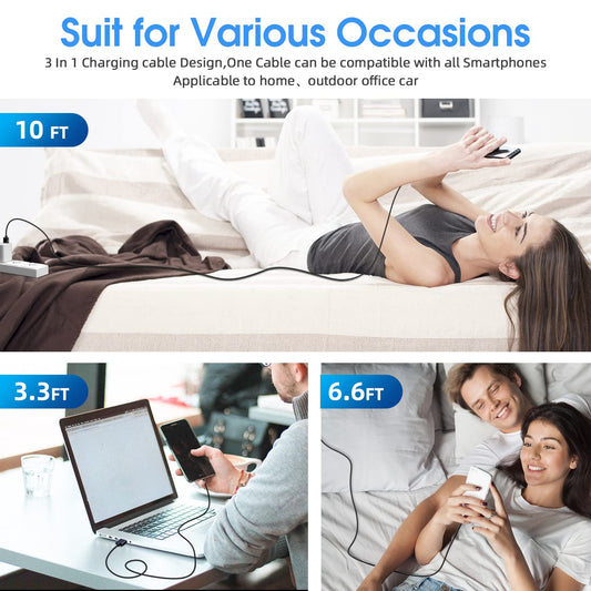 7-Pack 1.6FT/3FT/3FT/3FT/6FT/6FT/10FT 540 Rotating Magnetic Phone Charger 3 in 1 Magnetic Cable Nylon Braided USB Charger Cable for Micro USB/Type C/iProduct Device - Black