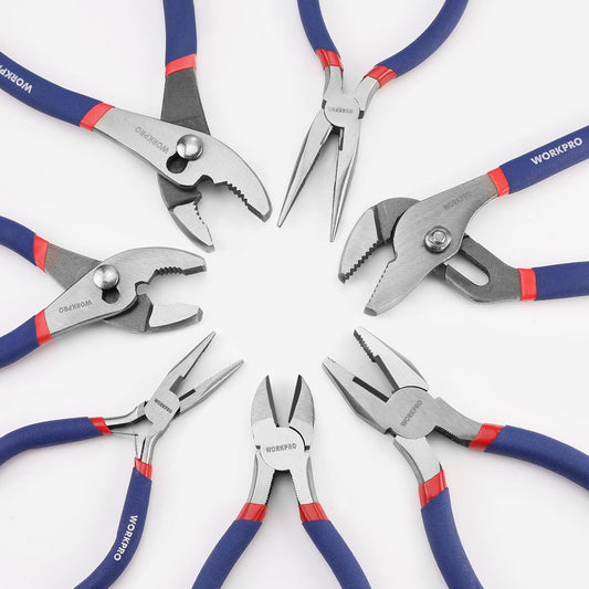 7-piece WORKPRO Pliers Set with Groove Joint, Long Nose, Slip Joint, Linesman, and Diagonal Pliers for DIY & Home Use