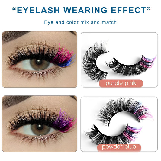 7 Pairs Colored False Eyelashes, 3D Mink Faux Lashes with Color Tips, Dramatic Fluffy Volume Strip Lashes for Cat Eye Look, Colorful Lash Extensions for Makeup Artists, Cosplay, Parties