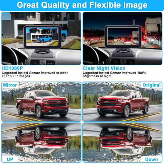 7-Inch Wireless Backup Camera for Truck - 2 Channel, DIY Grid Lines, HD 1080P, Night Vision, IP69K Waterproof, Backup Camera for Truck, Pickup, Trailer, Cars - Parking Safety & Towing Assistance