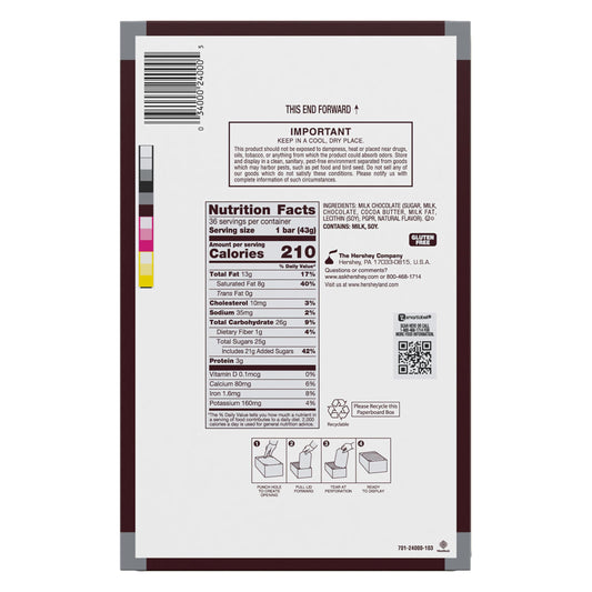 HERSHEY'S Milk Chocolate Candy Bars, Halloween Candy, 1.55 oz (36 Count)