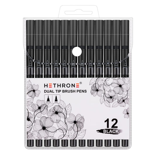 Hethrone Black Markers for Drawing - Brush Pens with Felt Tips for Artists - Calligraphy Pens, 12 Pack