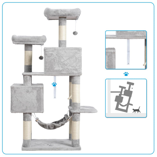 Hey-brother Cat Tree, Cat Tower for Indoor Cats, Cat House with Large Padded Bed, Cozy Condo, Hammocks, Sisal Scratching Posts, Big Scratcher, Light Gray MPJ006SW