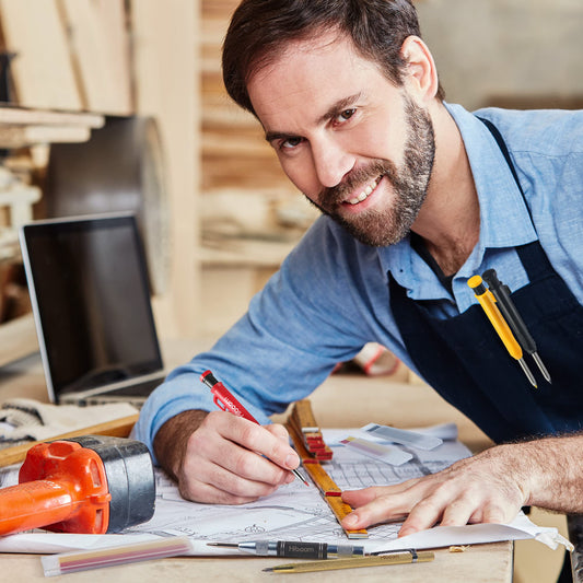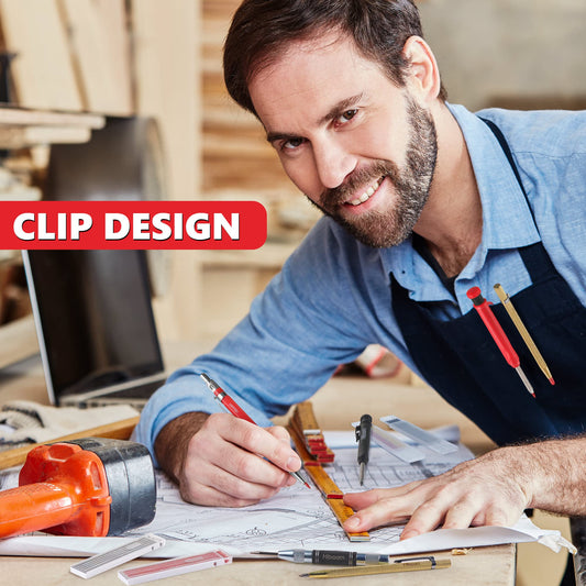 Hiboom Mechanical Carpenter Pencils with Solid Deep Hole Woodworking Pencils with Built in Sharpener & Refills, Automatic Center Punch, Carbide Scribers Tool Set for Architect Construction