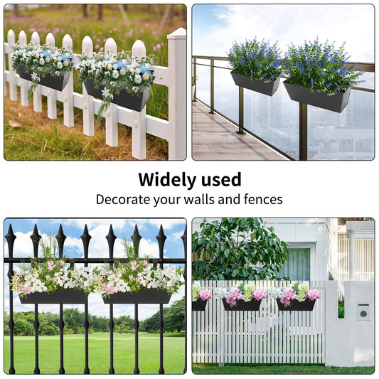 Holensun Railing Planters Outdoor Balcony 16 Inch Deck Over The Railing Planter Boxes Hanging Planters for Fence Flower 3 Pcs (Black)