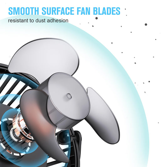 HONYIN 720° Rotation Small Desk & Clip on Fan with Sturdy Clamp, 3 Speeds, Quiet Little Personal Cooling Fan by USB Plug In, for Bedroom Office Desktop Treadmill