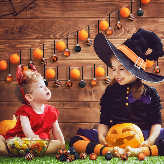 Honoson 24 Pcs Mini Halloween Ornaments for Tree 1.2 Inch Halloween Glitter Balls Ornament Set Small Black Orange Hanging Tree Decoration for Home Indoor Party Supplies