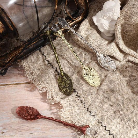 Honoson Retro Crystal Spoon Crystal Alloy Witch Tea Coffee Vintage Carved Spoon Dessert Decorative for Cafe Tableware Coffee Bar(16 Pieces)
