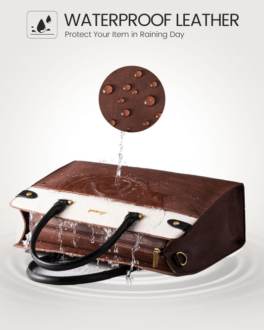 LOVEVOOK Laptop Tote Bag For Women Work, Vintage Leather Computer Bags For Laptops For Women, Waterproof Laptop Bag Business Briefcase Office Large Shoulder Handbag Purse, 15.6 Inch, Brown-Beige-Black