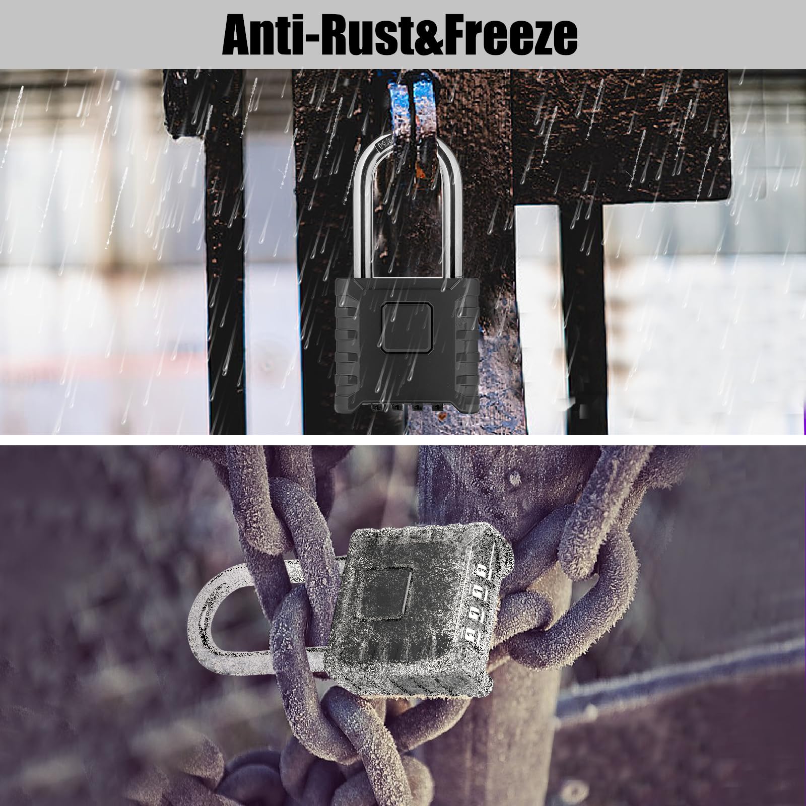 1 Pack disecu Long Shackle Heavy Duty 4 Digit Combination Lock, One Touch Unlocking, Anti-Error Feature, Waterproof Large Outdoor Padlock for School Gym Locker, Fence, Gate, Storage Unit (Black)