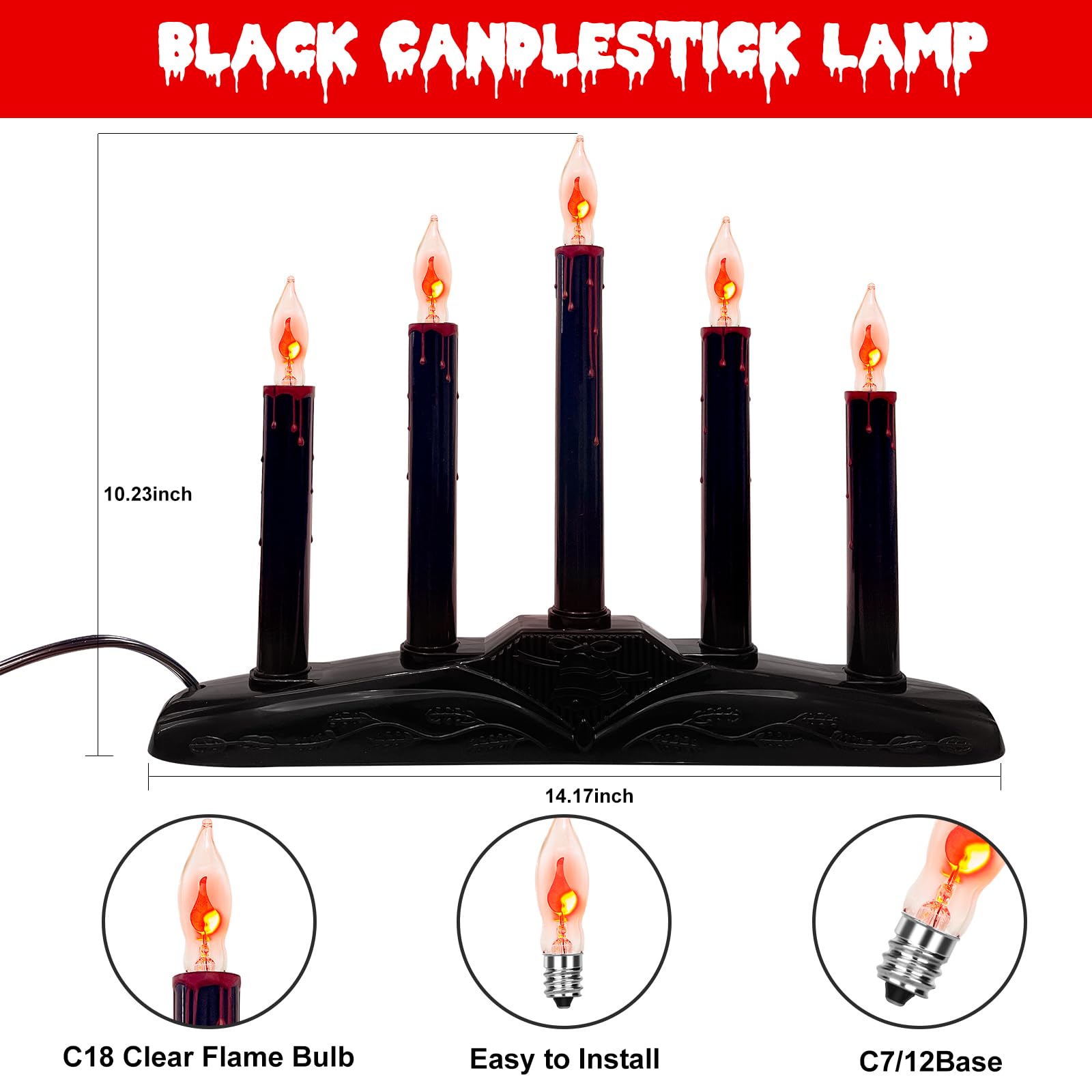 1 Pack Halloween Electric Candle Lamps, 5 Light Black Flameless Candle with 5 C18 Orange Flicker Flame Bulb, Plug in Flickering Window Candle Holder for Halloween Party Home Table Bar Holiday Decor