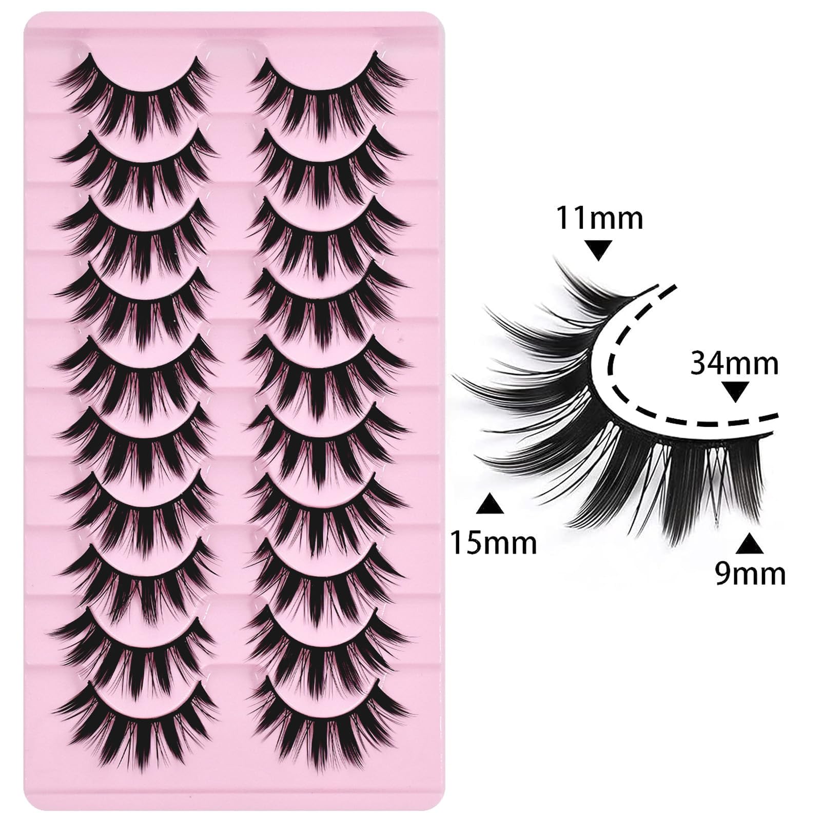10 Pairs Manga Lashes Anime Cosplay Lashes Spiky Manga Style Lashes Janpanese 16mm Extension Natural Manhua Doll Eye Lashes Halloween/Party Makeup Look by AUGENLI (A3)