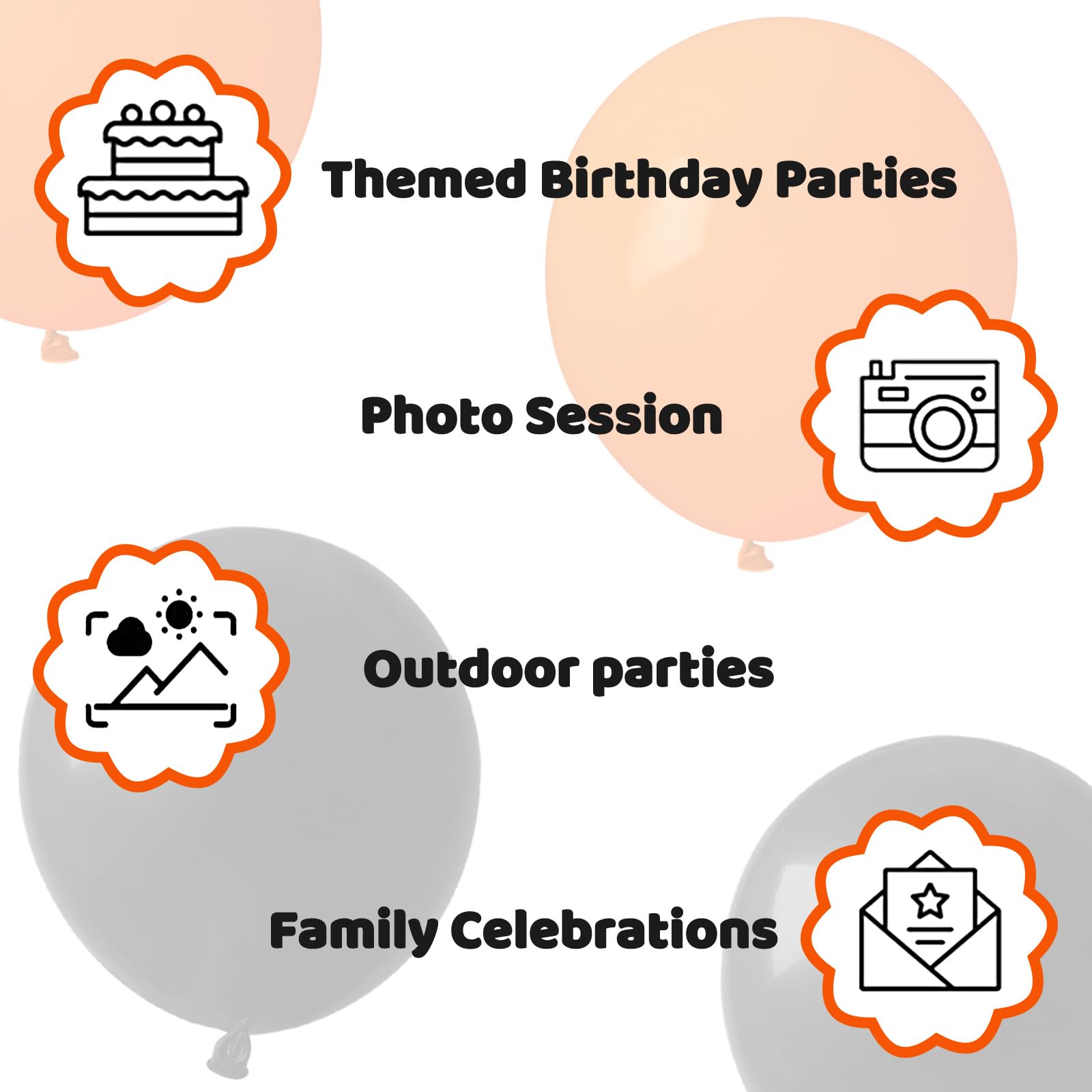 • Classic color combinations - Black and orange ballons give your party a Halloween vibe, Shiny black balloon, orange balloons, Rich colour combinations are perfect for your creative decorating ideas, It will makes your party attractive and romantic.