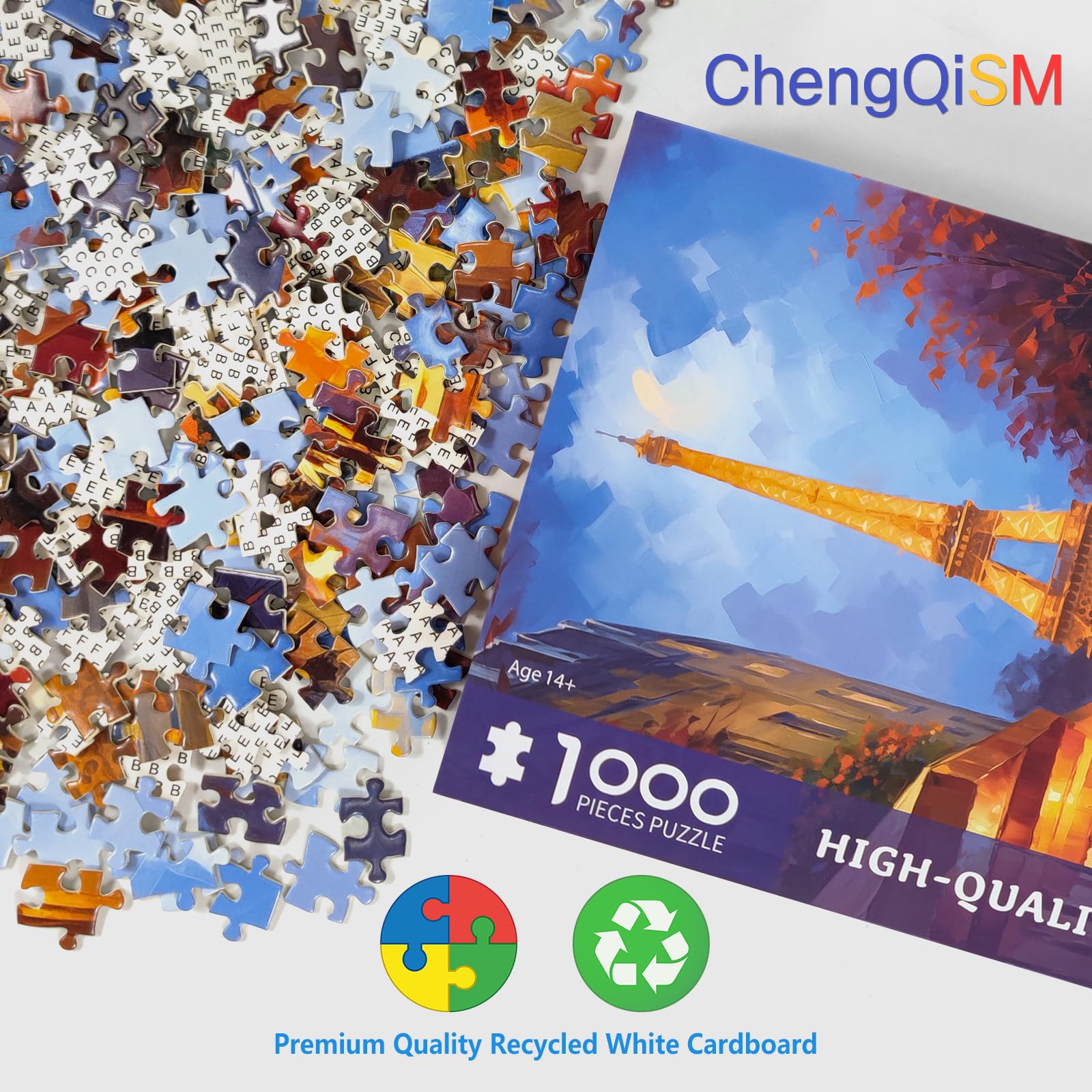 1000 Piece Puzzle for Adults Paris Tower Jigsaw Puzzles 1000 Pieces Eiffel Tower Puzzle for Adults Paris Night View Oil Painting 1000 Piece Jigsaw Puzzles Challenging Gift for Teens Seniors